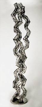 For Julian Voss-Andreae, it is less important to copy a molecule accurately in all its details than to find a guiding principle and follow it to see whether it yields artistically interesting results. The main idea underlying this body of work is the analogy between the technique of mitered cuts in his sculptural materials and protein folding. Voss-Andreae’s process resembles the algorithmic process of protein biosynthesis in that he uses the computer to calculate the shape of his sculptures from scientific protein data using custom-developed software. Beside this deterministic side of Voss-Andreae’s work, there is an equally strong intuitive and irrational side, where his pieces stop working as scientific models and become pure art objects.